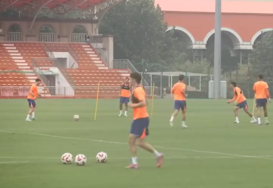 泰山在训练基地开始了恢复性训练。(泰山俱乐部视频截图)